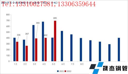 近期我國大部分區域已經開始逐步解除疫情封控,對于前期因疫情導致的運輸受阻基本暢通,因此前期因運輸導致的延遲發貨在5月份已經有所體現,預計6月份仍有部分推遲訂單陸續發出,因此6月份我國厚壁無縫鋼管出口或將繼續呈現增勢,由于訂單縮減,7月份起我國厚壁無縫鋼管出口量或將開始逐漸低迷,回歸正常至500萬噸左右的出口量。
