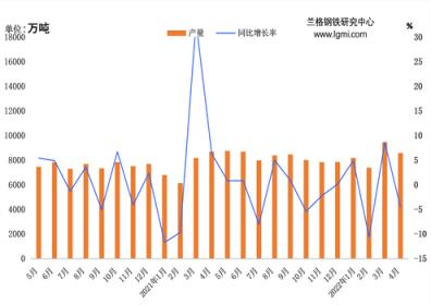 據(jù)國家統(tǒng)計局數(shù)據(jù),2022年1-4月份全國鐵礦石原礦總產(chǎn)量為33079.4萬噸,同比下降0.9%,4月份受到疫情影響,導(dǎo)致國產(chǎn)原礦鐵礦石產(chǎn)量出現(xiàn)大幅下滑。