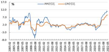 美國CPI同比漲幅在4月份小幅回落之后,5月份上升至8.6%,再創(chuàng)近40年來的新高。通脹形成的原因比較復(fù)雜,既有疫情之后貨幣超發(fā)、供應(yīng)鏈?zhǔn)茏璧纫蛩氐挠绊懀灿写饲百Q(mào)易保護(hù)播下的種子,還有今年烏克蘭危機導(dǎo)致的能源和糧食的供應(yīng)缺口。近期美國財長耶倫表示,美國的食品和能源價格還有進(jìn)一步上漲的風(fēng)險。
