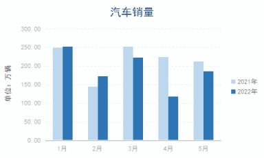 5月,受利好消息影響,汽車產(chǎn)銷明顯增長(zhǎng)。據(jù)中汽協(xié)數(shù)據(jù),5月,汽車產(chǎn)銷分別完成192.6萬輛和186.2萬輛,環(huán)比分別增長(zhǎng)59.7%和57.6%,同比分別下降5.7%和12.6%。1-4月,汽車產(chǎn)銷分別完成961.8萬輛和955.5萬輛,同比分別下降9.6%和12.2%。