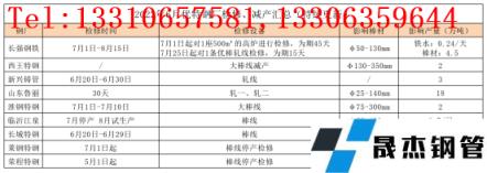 表1:6月份優(yōu)特無縫鋼管廠家檢修、減產匯總