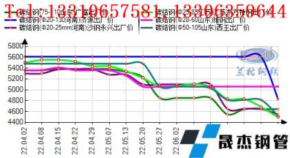 圖2:2022年上半年優(yōu)特鋼主導無縫鋼管廠家出廠價格走勢圖